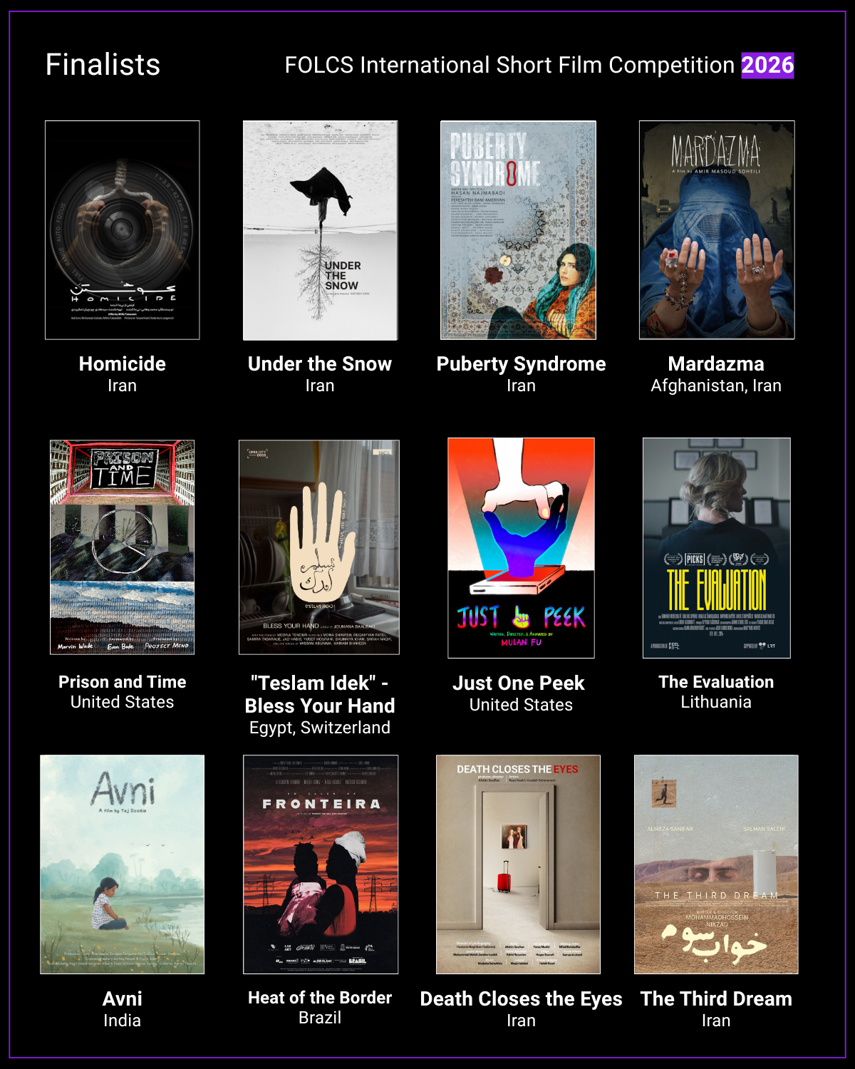 Online Screening Days (April 30th- May 9th): Join us for the FOLCS International Short Film Competition Online Screening Days, where this year’s powerful finalist films will be available to watch from anywhere. Experience bold, thought-provoking stories from emerging filmmakers exploring themes of law, justice, and human rights.